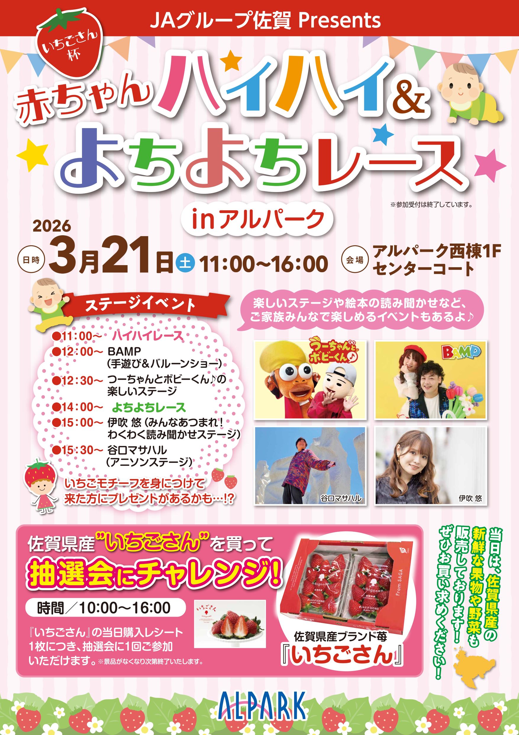 《JAグループ佐賀Presents》 いちごさん杯 赤ちゃんハイハイ&よちよちレース2026.3.21(土)