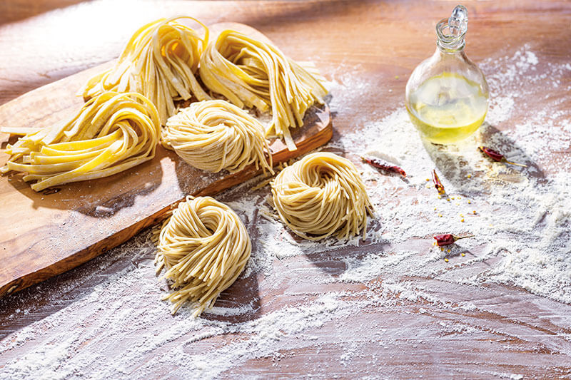 鎌倉パスタの最大の魅力はなんと言っても生麺!最高級グレードのデュラム粉100%を素材に使用した新鮮な生パスタは、乾麺では味わえないフレッシュ感・もちもち食感で、どのソースにも良く絡むのでアレンジ自在!