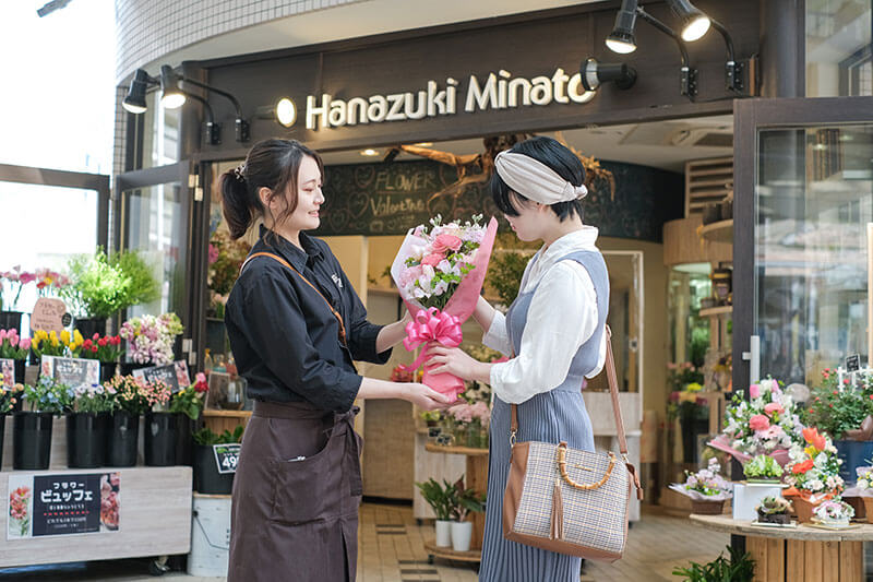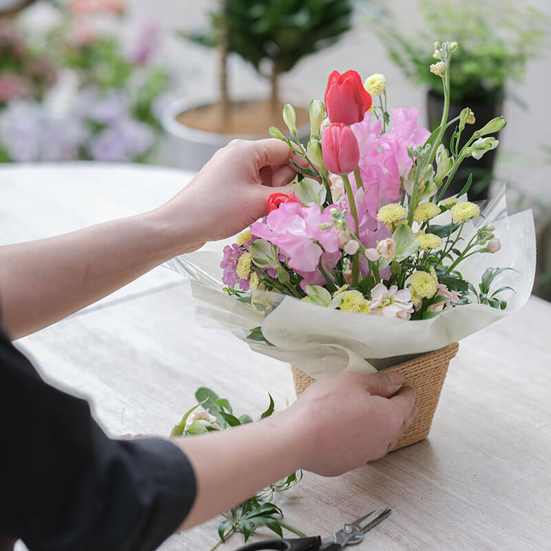 市場から直接仕入れたお花を日持ち保証販売していますので、安心してお花選びを楽しんでいただけます。また、「大人かわいく」でデザインされたアレンジメントやブーケも人気です。週末には「花と素敵な週末を」をテーマにウイークエンドフラワーとして季節のお花をご案内しています。