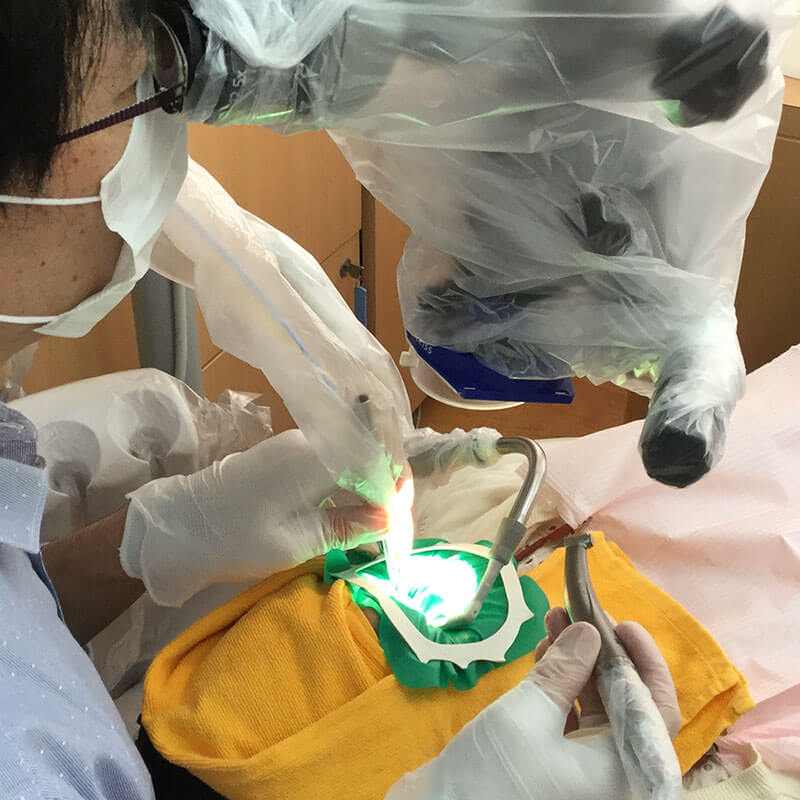 当院はアットホームな雰囲気のクリニックです。マイクロスコープを使った精密な治療や、大人と子どもの矯正歯科をしています。特に、歯を抜かない矯正治療に力を入れています。