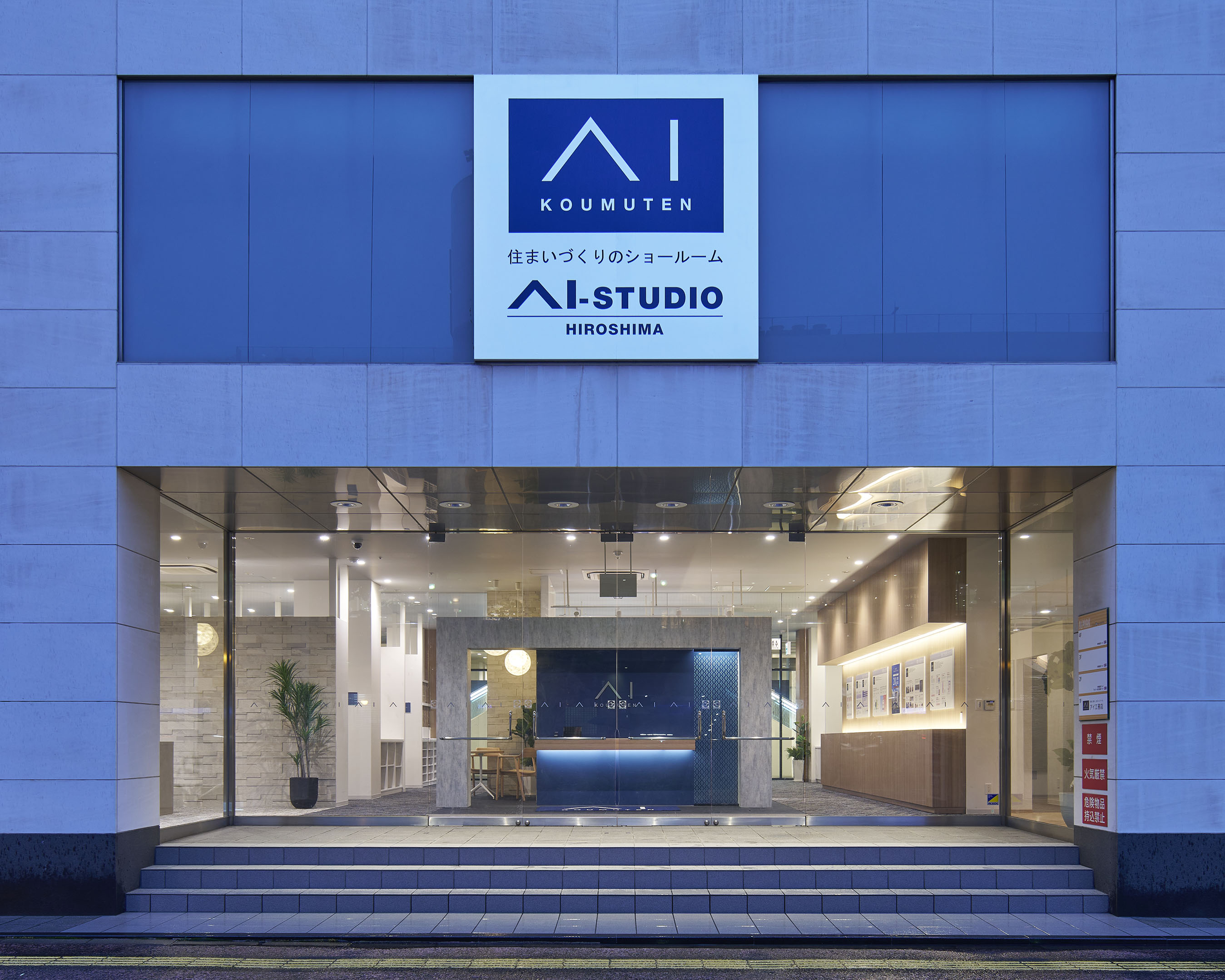 アイスタジオ広島では、住宅設備メーカー各社の展示ブースや、外壁内装メーカーの建材展示ブース、設計相談スペース、またお客様の理想の家をリアルに実現できるよう、設計したプランをそのまま立体的に体感できるVRコーナーや、弊社の構造躯体や断熱性能比較コーナーなど、あらゆる角度から訴求し提案できるような空間となっております。