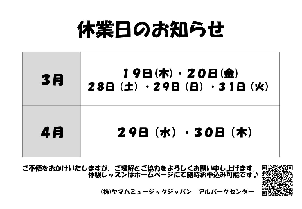 【休館情報】3月・4月休館日のご案内