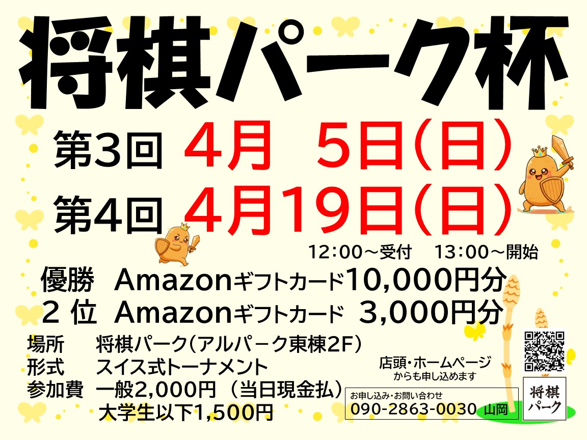 将棋パーク杯(大会)開催 4月5日(日)19日(日)