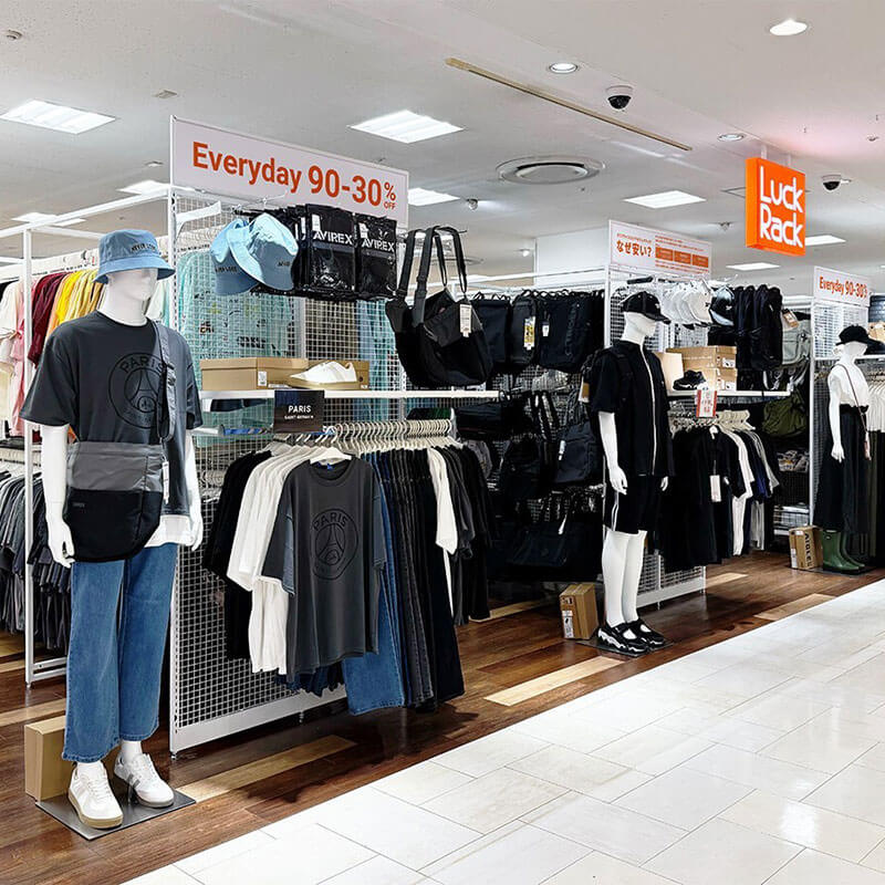 ラックラックは、様々な理由で販売時期を過ぎてしまった商品をメーカーから仕入れ、ファッションアイテムを中心に国内外の新品ブランド品を毎日90~30%OFFで販売するオフプライスストアです。ラックラックのお買い物で製品の大量廃棄を減らし、廃棄時に発生するCO2も削減。サスティナブルな未来に貢献します。価値あるモノとの驚きの出会いを是非、お楽しみください。