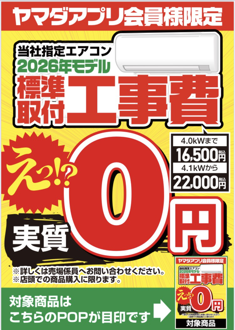 2026年モデル 標準取付工事費0円 (当社指定機種)
